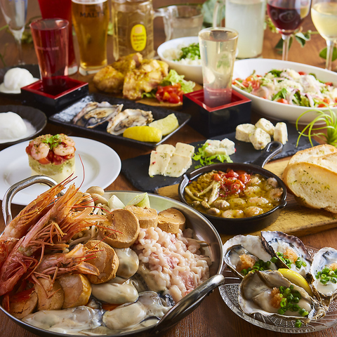 各種牡蠣や海鮮のついたコースをご用意。全コース3時間飲み放題付き3500円~ご案内。