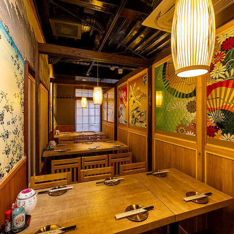 接待、会食、誕生日、デートなどに最適な完全個室をご用意。人数に合わせたお部屋をご案内し、プライベートな時間をお楽しみいただけます。広々とした空間は宴会や女子会、合コンにもぴったり!扉付きの個室なので、周囲を気にせずゆったりとしたひとときをお過ごしいただけます。特別なシーンにぜひご利用ください♪