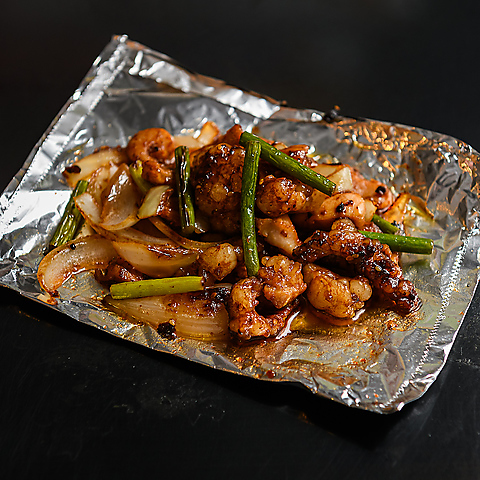 川原焼とは、広島流の焼き方で焼いたお好み焼きです。広島のお好み焼きは、小麦粉の生地をクレープ状に焼き、キャベツやもやし、豚肉に焼きそばを山盛りにし、薄く焼いた卵を重ねて蒸し焼きにしたものです。ソースも広島から仕入れておりますので、沖縄では滅多に味わえない味を是非お楽しみください。