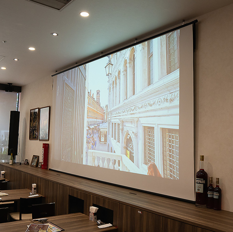 プロジェクター完備!映像を流せますので同窓会や結婚式2次会などぜひご活用ください |