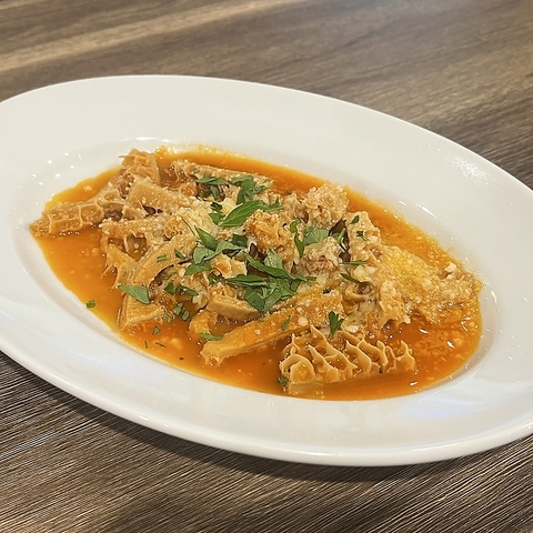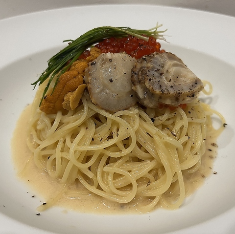 TVの情報番組でも「世界一美味しい生パスタ」として取り上げられた生パスタを、更に今日和用に上質にアレンジしています。小麦を大胆に削って芯の部分のみを使用して精製された麺はまさに「大吟醸パスタ」一度食べたら他の生パスタには戻れない!と思えるほどの香りと食感です。今日和でしか味わえません。