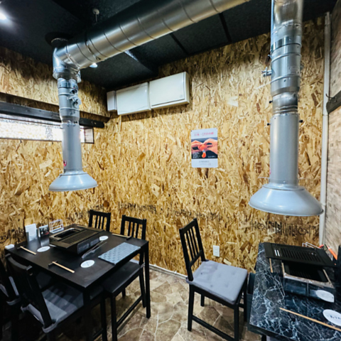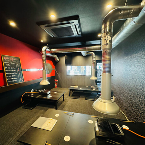 2階のお座敷席は、落ち着いた赤と黒のコントラストが印象的で、洗練された空間が広がっています♪低めのテーブルと座布団が配置されており、リラックスした姿勢で焼肉を楽しむことができます◎換気設備も整っていて快適に過ごせる環境が整っているため、特別なひとときを演出します。友人や家族との集まりに最適です!