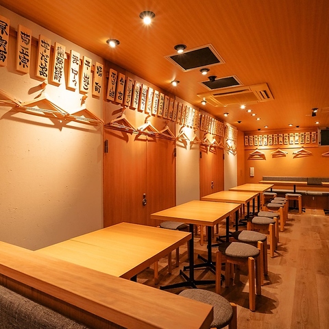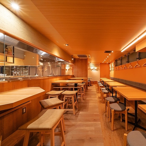 シンプルながらも木の温もりを感じられる、スタイリッシュなこだわりの空間。会社帰りの飲み会やご友人とのお食事はもちろん、おひとり様も気兼ねなくご利用ください。