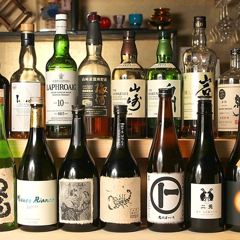 日本酒は季節ごとに厳選した5種類と、焼酎4種類をご用意しております。有名なものからマイナーなものまで、料理にぴったり合うお酒を取り揃えています。スパークリングワインや、プレミアムウイスキーをはじめ、地酒は多くの銘柄を揃えておりますので、ぜひ飲み比べをお楽しみください。
