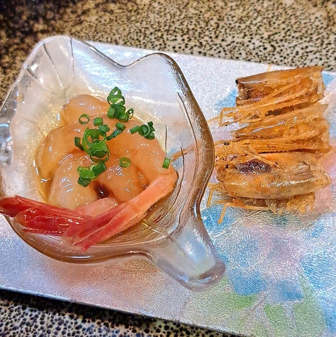 単品からご注文いただけるこちらの一品季節のおいしさを気軽に楽しめる三つの味わい。ぷちっと旨みが詰まった子持ち稚鮎、とろっと濃厚な鱈白子、香り豊かなカラスミと、それぞれ個性が光ります。お酒のおともにもぴったりで、ちょっと贅沢したいときにうれしい一皿です。