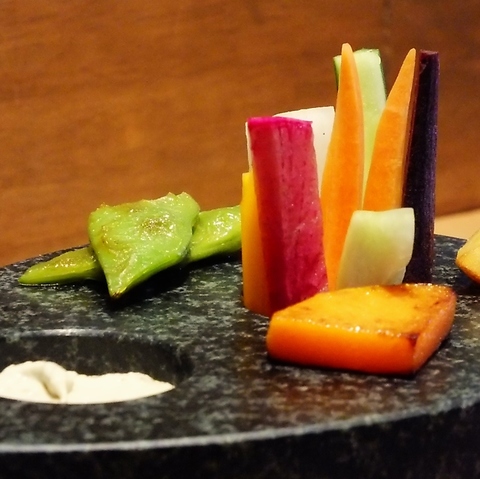 コースで味わえるバーニャフレイダ(冷たいバーニャカウダ)は当店のスペシャリテ。つまみにも、箸休めとしてもお楽しみ頂けます。