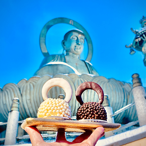 大仏ケーキセット(ブラックブッダ/ホワイトブッダ)+お好きなドリンク+お土産付きのセットメニューもご用意