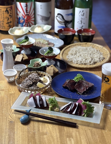 当店の看板メニューは、そば出汁とくじらのモツと赤身肉を使用した、コクのある『くじらカレーそば』。当店自慢のくじらと氷温熟成そばは夢の掛け合わせ。季節を問わず、昼・夜のシーンに応じてお楽しみいただけます!また、蕎麦やくじらメニューのほかにも、コース料理や逸品料理も充実しております。