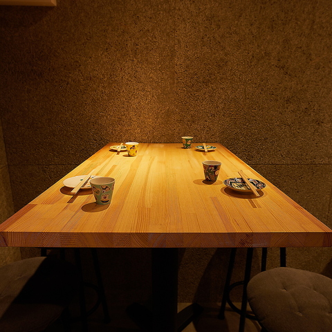 オープンしたての清潔感のある店内は4名掛けテーブル席も完備。一人でサクッと飲み、グループ利用でしっくりなどに使い方は自由◎
