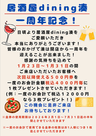お店に行く前に居酒屋dining 湊のクーポン情報をチェック!