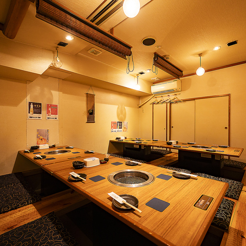 一見、焼肉店とは思えない風情が北新地らしい佇まい。かしこまった宴席にもふさわしい空間です。北新地駅から徒歩2分のアクセスながら、街の喧騒から離れた落ち着いた雰囲気。朝5時まで営業していますので、様々なシーンでご利用ください。少人数様はもちろん、掘りごたつの個室や貸切で22名様まで対応いたします