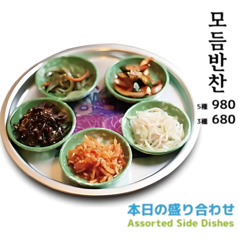 韓国では家庭でもよく作られる一品として、とても美味しい5種類が一品となっております。しかも、おかわりできます!