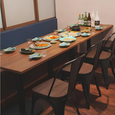 テーブル席は、ご友人やご家族とゆったり過ごしたい方におすすめです。本場の韓国料理を囲んで、賑やかに食事を楽しむことができます。最新のK-POPが流れる広々とした空間で、心ゆくまでお過ごしください。いつでも気軽にふらっと立ち寄れる雰囲気のお店です。