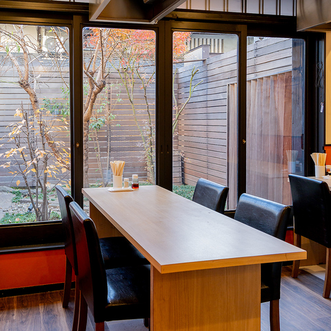 庭園がみえるテーブル席あり◎各種宴会やデートにもお使いいただけます♪