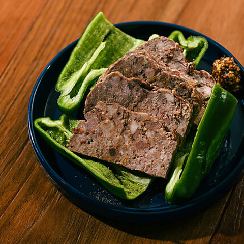 氷水できりっと冷やしたピーマンに、風味豊かな自家製パテドカンパーニュを合わせた一皿。シンプルながら止まらない組み合わせです。