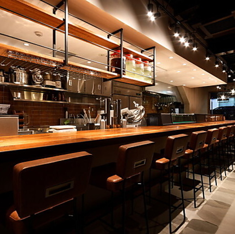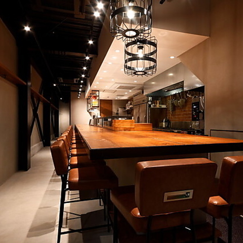 カウンター席はお一人様やペアにぴったり♪落ち着いた照明が居心地◎大人時間をゆっくりお楽しみください。