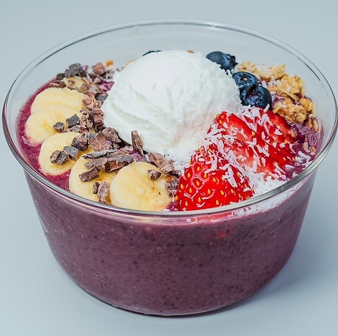 当店でしか味わえないmilkygreekオリジナルのアサイーボウル。オーガニック100%の特製アサイーブレンドの上にバナナ、グラノーラ、ハードのグリークヨーグルト、ジューシーなフルーツ。当店でしか味わえない。様々なトっピングを取り揃えているので、お好きなカスタムでおたのしみください。