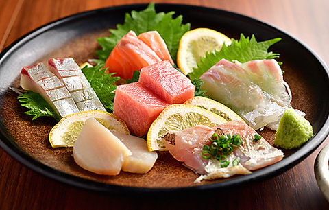 市場直送の新鮮な海の幸が、楽しめる一皿です。目にも鮮やかに盛り付けられています。毎日仕入ているのでラインナップは、訪れるたびに変化いたします!5種類以上の海鮮を盛り合わせているため、飽きることなく楽しむことができます。単品での注文も可能なので、お好きな味を選んで楽しんで下さい♪