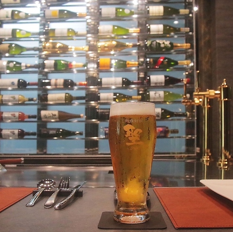 圧巻のワインセラーをバックにひとつひとつ丁寧に焼き上げます。ライブ感と特別なひとときを。