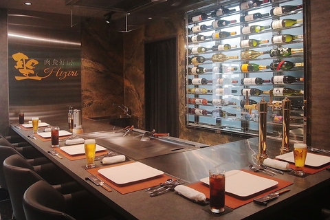 洗練された雰囲気の店内。個室やカウンター(鉄板前)とご利用のシーンに合わせてお楽しみいただけます。会食や記念日、デートなどの大切な日に。