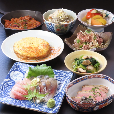 四季折々の食材を活かした季節料理をご用意しております。お刺身や一品料理に加えて、「スペイン風オムレツ」などの創作料理もお楽しみいただけます。和洋折衷の幅広いメニューを取り揃えており、どなたでもお楽しみいただける内容となっております。