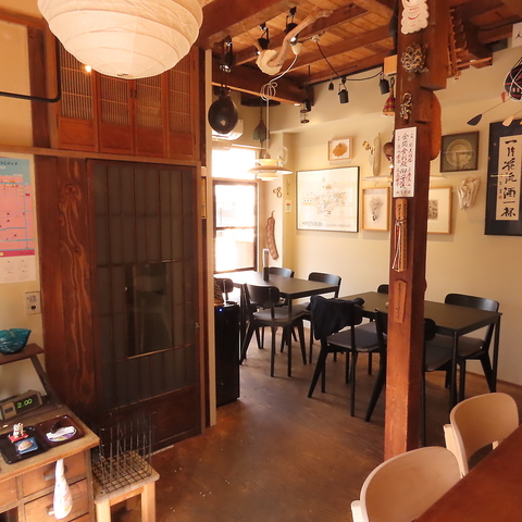 温もりある古民家にモダンな魅力を融合させた、居酒屋兼ゲストハウスとなっております。居酒屋のみのご利用も大歓迎!木の温もりと和の趣を活かした店内には、ゆったりと座れるテーブル席に加え、お一人様でも気軽に楽しめるカウンター席もご用意しております♪