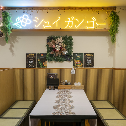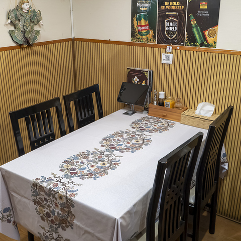 《ミャンマーを感じられる店内♪》ミャンマーの伝統的な装飾品が並ぶ店内は、異国情緒あふれる空間♪スパイスの豊かな香りが漂い、本場ミャンマーの雰囲気を五感で楽しめます。カウンターでのお食事は仕事終わりやお2人でのご利用に最適です。タブレット端末からご注文頂けるのでゆっくりと空間をお楽しみいただけます。