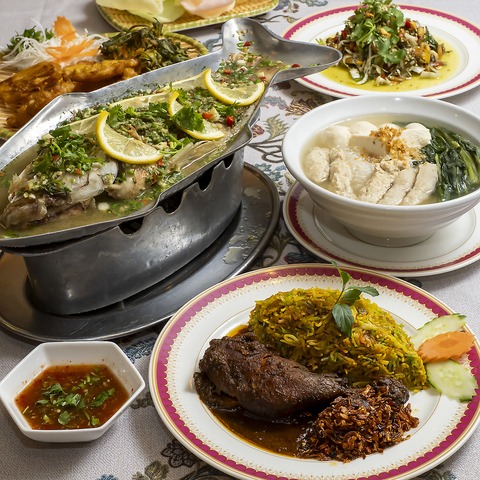 ミャンマーの国民食ビリヤニやモヒンガーなどミャンマー料理を堪能頂けるコースをご用意しております!クーポン利用で飲み放題付に変更可能で宴会や女子会など様々なシーンでのご利用に最適です!