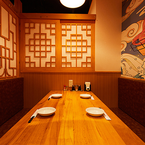 通常4名様~【最大20名様】まで対応可能な個室をご用意!皆さまでの大型宴会でワイワイ楽しむことができます!和風の壁紙が彩るゆったり空間で、特別な時間を過ごしてみませんか?プライベートの空間で思い出に残るひとときをお楽しみいただけます!