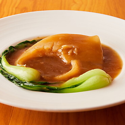 大きなフカヒレをじっくり煮込んだスープで仕上げました。プリッと弾む食感と、透明な旨味が決め手。見た目の豪華さだけでなく、味も本格派。コースでもお召し上がりいただけます。