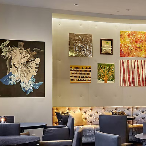 アートワークに囲まれた洗練された空間。まるで美術館で贅沢な食事を楽しんでいるかのような体験を。