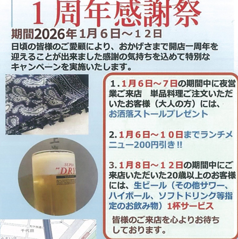 2026年1月6日~12日は1周年感謝祭!日頃の感謝込めて、お客様をお待ちしております!