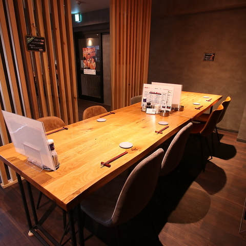 席と席の間に仕切りがあるため、周りを気にせずリラックスした雰囲気の中でお食事をお楽しみいただける半個室席がございます。ご友人や大切な方との会話を心ゆくまで楽しむことができるプライベート空間で、至福のひとときをお過ごしください。接待などのビジネスシーンにも最適なお席です◎