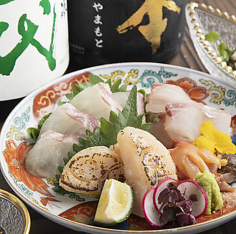 高級志向な内装が魅力の店内には、和の趣が感じられるカウンター席をご用意。目の前で調理風景を眺めながら、日本酒がずらりと並ぶ棚から選ぶ楽しさも体験できます。料理を待つ間、和の美しい器や細やかな盛り付けに目を奪われ、食事が一層特別なものに…。深夜まで営業してますので、二件目利用にも是非お立ち寄り下さい。