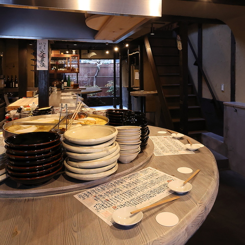 当店名物、熱々のおでんは定番から変わり種まで、常時約20種類をご用意!大きな窯でじっくり炊き込まれたおでんは、心も体も温まる絶品!中でもおすすめなのが「にゃんペン」。可愛いネコ型のはんぺんは見た目も楽しめ、やわらかい食感と旨味がたっぷり♪心温まるひとときをお楽しみください。【飲み放題/四条烏丸】
