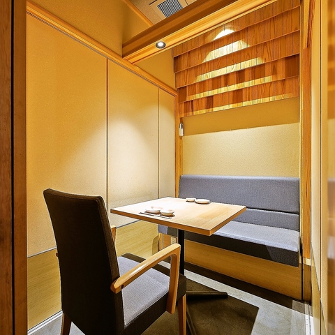 【2名様のご利用可能な個室テーブル席】カップルのご利用にもピッタリです!落ち着いた雰囲気の店内。その他にも、人数などに合わせてさまざまなお席をご用意しております♪友達や同僚との飲み会や接待、合コンにおすすめ!