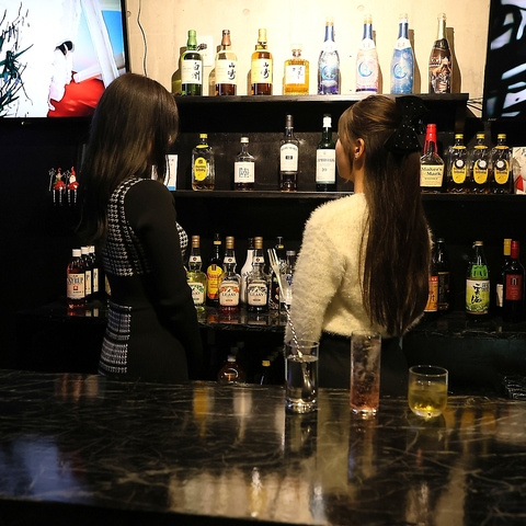 【BAR AQUADANCE】4階のAQUA DANCEはシックでおしゃれな空間◎仕事終わりや一杯飲みたいときに明るい女性スタッフとお喋りしたり、ずらりと並んだお酒を見ながら素敵な時間を過ごしませんか?
