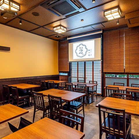 店内は和モダンで落ち着いた雰囲気。プロジェクターなど各種設備も充実していて、同窓会や結婚式2次会などのご宴会にオススメです☆ご利用人数や座席レイアウトなどお気軽にご相談ください!