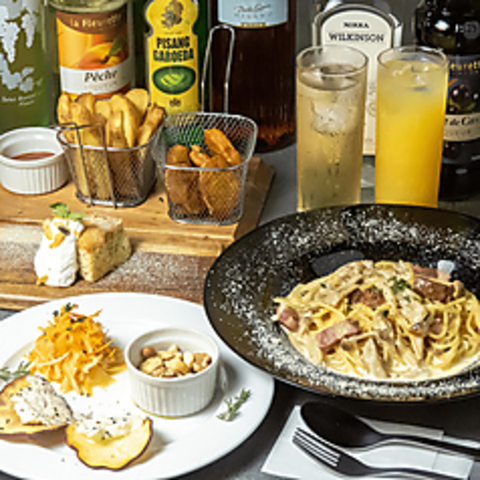 ランチタイムのみ、倉敷駅で昼呑みコースあり!前菜3品からポテナゲ、パスタorピザ、一口デザートで乾杯♪