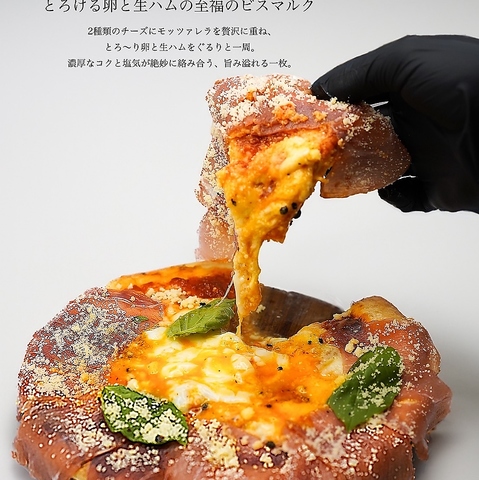 薄くスライスされた上質な生ハムがたっぷりとトッピングされ、見た目にも贅沢な印象を与えます。香ばしく焼き上げられた生地は、外はカリっと中はふわっとした食感で、食べ応えも抜群です。ワインやビールとの相性も◎