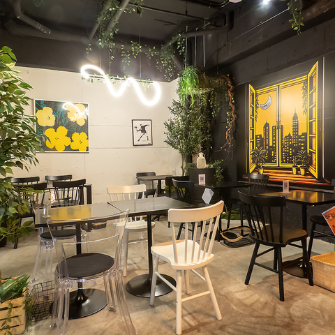 2名様~4名様でご利用いただけるテーブル席★ご家族、ご友人とのお食事や会社の仲間などとの飲み会にいかがでしょうか。オシャレでにぎやかな雰囲気のお店で楽しくお過ごしいただけます。POPな内装で写真映え間違いなしのお店!