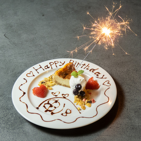 誕生日や記念日、各種お祝いのお席もご用意いたします◎素敵な御祝いの日には、別途料金で「特製プレート」をご準備できます!またサプライズの対応も可能ですので、特製プレートを含む内容の詳細は、店舗へお気軽にお問合せください!お客様の大切な日にこの店を選んでよかったと思っていただけますよう、精一杯おもてなしさせていただきます◎