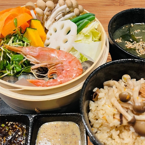 ランチタイムには当店でしか味わえない「ヘルシーなせいろ蒸しセット」をご用意しています!