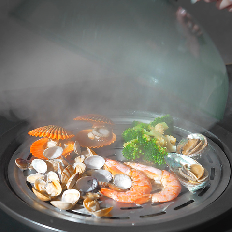 九州初上陸の海鮮蒸気鍋!高温の蒸気で蒸しあげた新鮮な海鮮は余分な脂が落ち、ふっくらジューシーに。〆に味わう海鮮エキスたっぷりのお粥はまさに絶品。ここにしかない味をお楽しみください♪