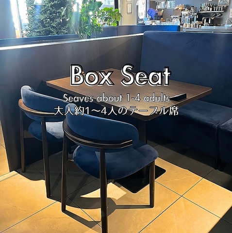 | テーブル | 3名様×3 | 大人1-2人がけのお席。隣のお席と合わせて1-6人がけのお席にすることも可能。 |