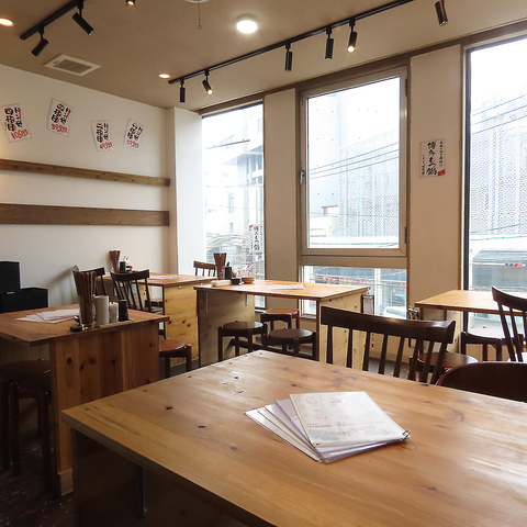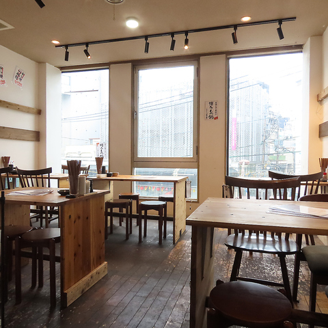 木材を基調とした温かみのあるデザインのテーブルは、リラックスした雰囲気を醸し出し、お客様が心地よく過ごせる空間づくりをしています。店内は賑やかな雰囲気で、デートの際のご利用にもぴったりです◎また、当店では窓からの景色を眺めながら、串料理や種類豊富な一品とお酒を堪能できますので、皆さまのご来店を心よりお待ちしております☆