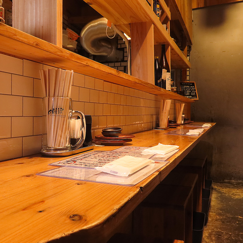 当店では、カウンター席を12席ご用意しております。コの字型のレイアウトで並んでおりますので、隣のお客様を気にすることなく、落ち着いておすごしいただけます。お一人様でのご利用はもちろん、デートや少人数のグループでのご利用にもオススメです!初めてのお客様にも常連様にも居心地のいい空間を演出しております!