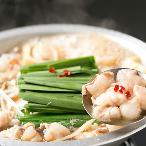 国産和牛の小腸をふんだんに使用した当店名物【もつ鍋】は、大粒でぷりぷりとした食感が魅力。醤油・味噌・旨辛の3種類から選べるスープは、その日の気分やお好みに合わせて楽しめます。コク深い味わいと素材の旨みが溶け合ったもつ鍋は一度食べればやみつきになる大人気メニュー。宴会や飲み会にも最適な自慢の逸品です。