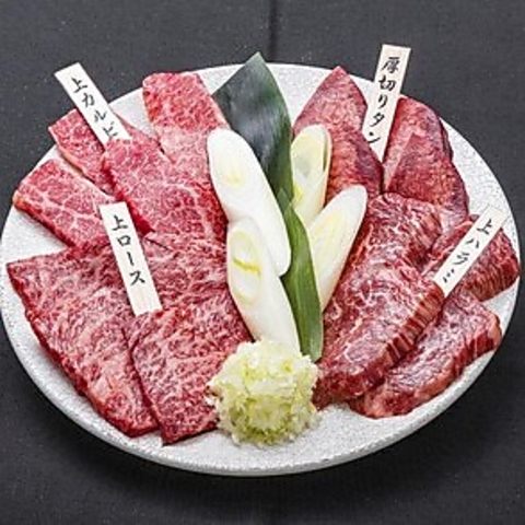 豪華に上部位だけを盛り合わせにしました。厚切りタン塩/上ハラミ/上カルビ/上ロース※写真は2人前