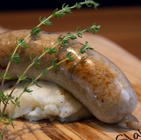 \自家製/ 肉汁溢れる!腸詰めハンバーグ3種類のソースKANEL.料理長が試行錯誤を重ねて作り出した「腸詰めハンバーグ」ナイフを入れた瞬間に肉汁が溢れ出ます!ハンバーグの下にひいているマッシュポテトで堤防を作り、肉汁が溢れ出るのを塞ぎながら、最高のハンバーグをご賞味ください